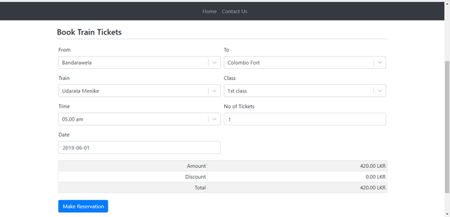 The figure below shows the landing page of the web application. Any user can fill the reservation details in the form and view the cost of tickets, but if user want to make a reservation user should login first.