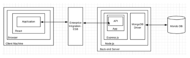 Front end of the web application is developed using React.js, backend is developed using Node.js and Express.js, MongoDB database is connected to the back end and the front end and the back end communicates with WSO2 EI, which is a comprehensive integration solution that enables communication among various, disparate applications.