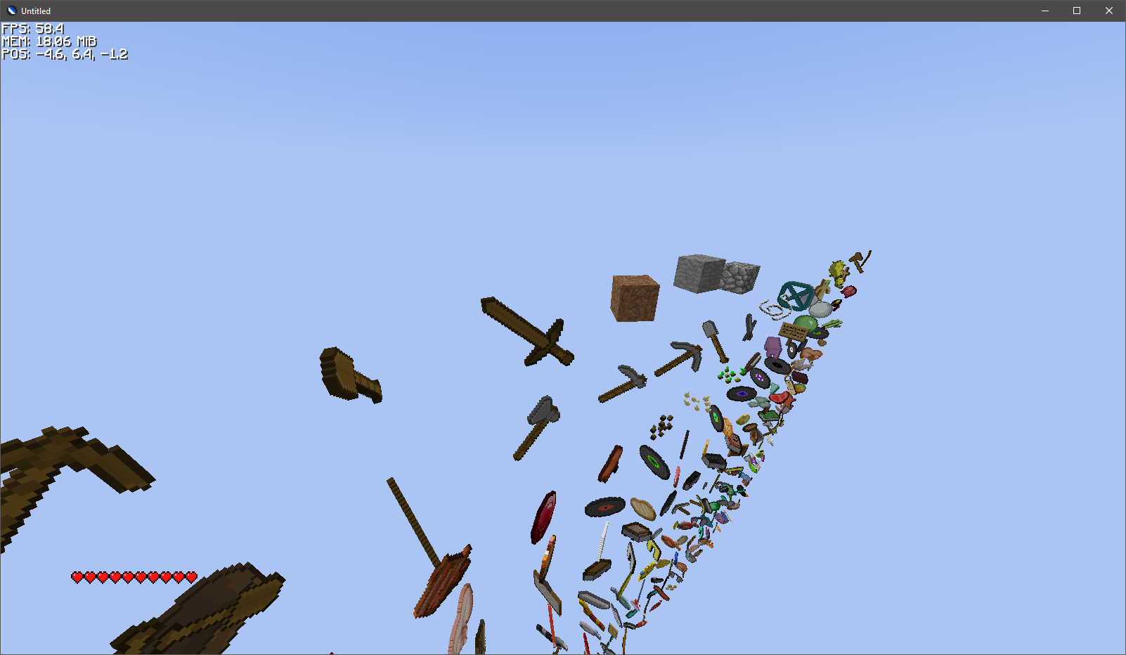 sparse-minecraft-clone (Not affiliated with Mojang) A Minecraft clone. Currently just the client. Screenshot (as of 4/2/2018) Screenshot (as of 3/21/2018) Screenshot (as of 3/16/2018)