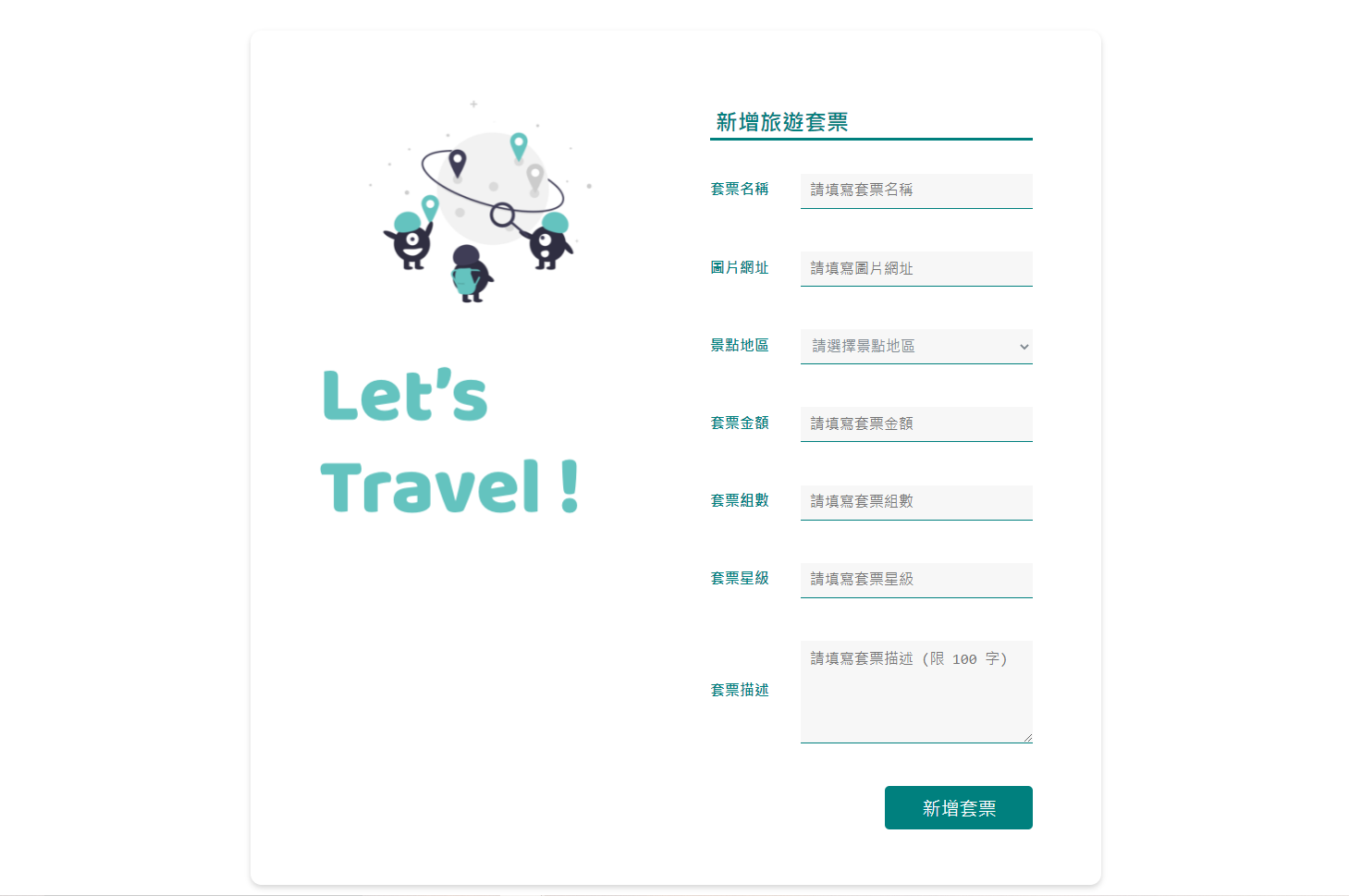 Lets_Travel Demo https://tony140407.github.io/Lets_travel/ 簡述功能 新增套票 可新增但沒有套新增的Api,僅在本頁渲染 Ajax 渲染遠端資料 渲染出卡片們 C3.js Donut圖 按套票比例做改變 搜尋 搜尋並選擇所指定的地區