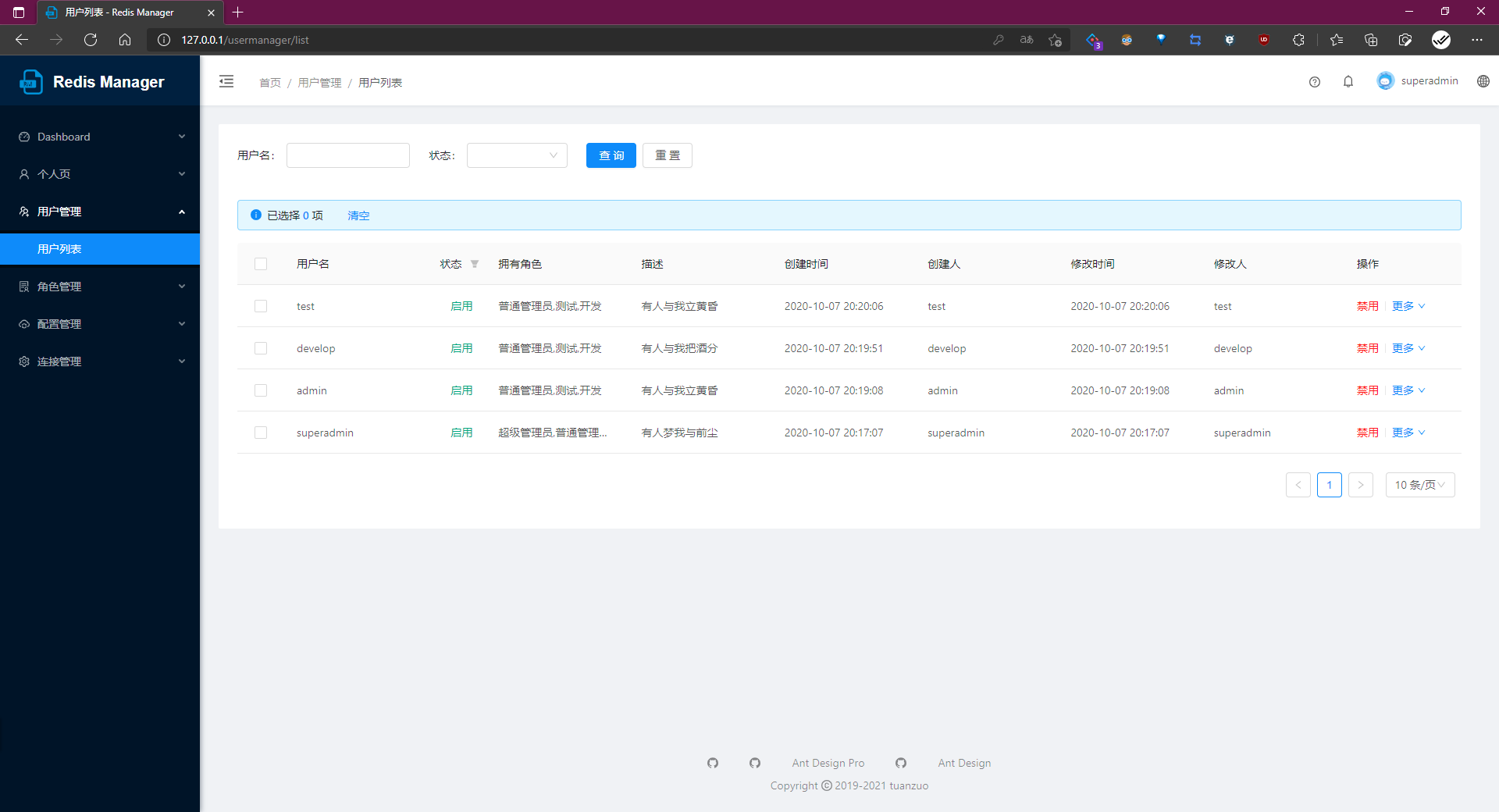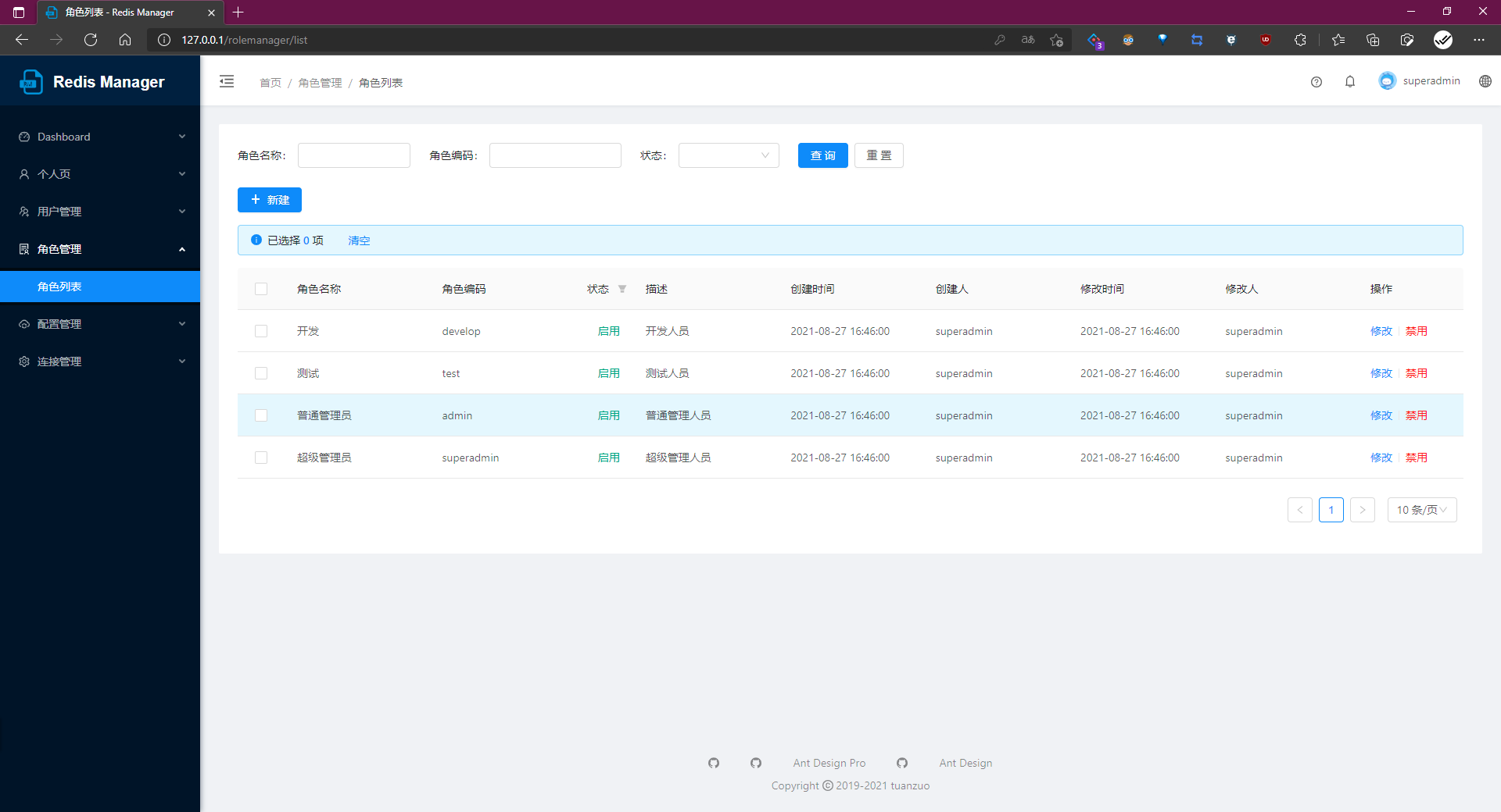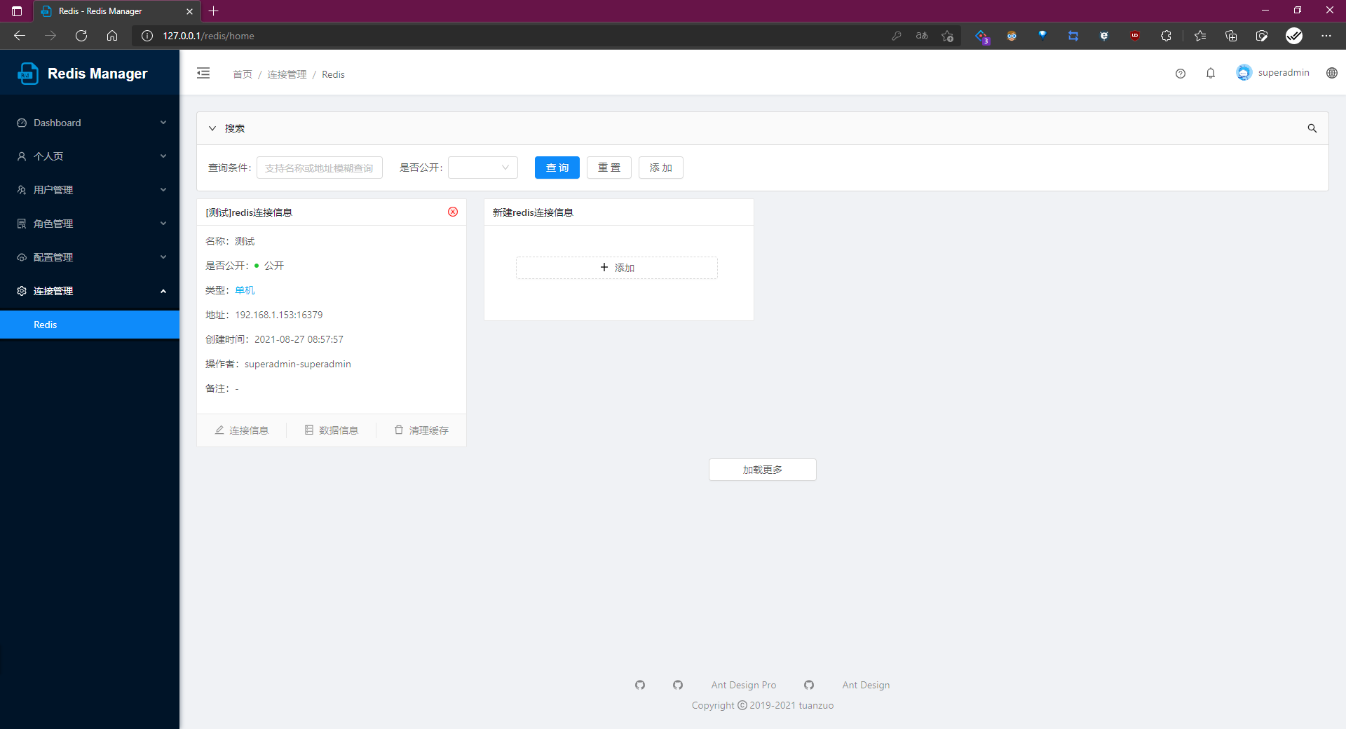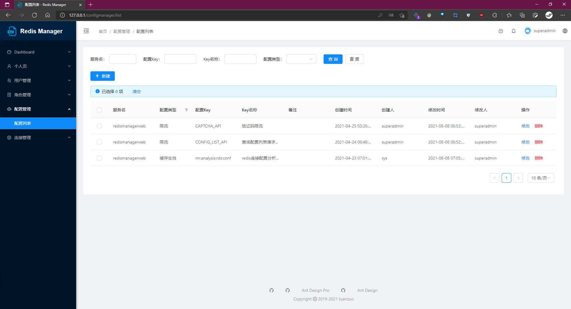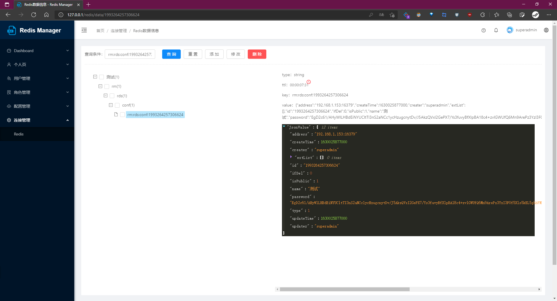 redismanager用于管理Redis的数据,支持Redis单机和集群下数据的查询,添加,修改,删除;支持自定义 key,value 的序列化方式。