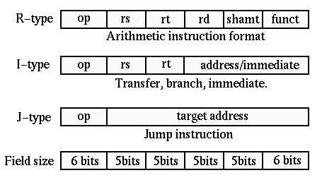 El procesador mips tiene tipicamente 3 tipos de instrucciones generales: