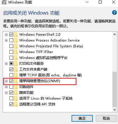 启用或关闭windows功能 - 把SNMP这一栏打√