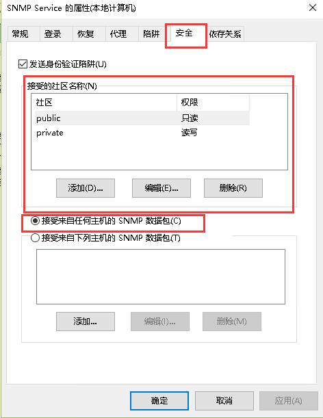 - 在 安全 里设置community和相关接受权限即可